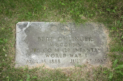 | to | Ohlinger, Bert | 15 Aug 1888 | 27 Jul 1957 | WWI-Cpl Co M. 129 Infantry | Married twice | 27 Oct 1920 | |