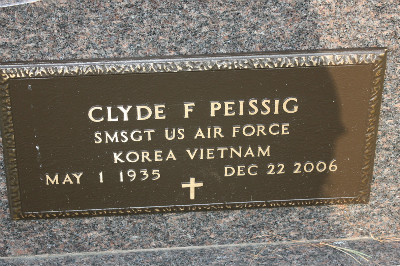 | t | Peissig, Clyde F.; #2 | 1 May 1935 | 22 Dec 2006 | Korea/Vietnam - SMSgt U.S. Air Force | Beverly A. | 28 Jan 1954 | |