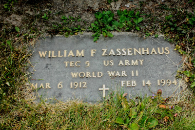 | t | Zassenhaus, William F. | 6 Mar 1912 | 14 Feb 1994 | WWII-Tec 5 US Army | Pauline R. | Frederick & Louise (Lucke) Zassenhaus | |