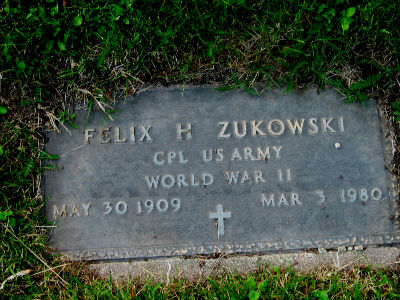| t | Zukowski, Felix H.; #2 | 30 May 1909 | 3 Mar 1980 | WWII-Cpl US Army | |||