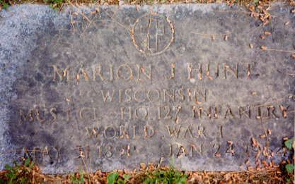 | cso | Hunt, Marion J | 00-B059-06 | 31 May 1891 | 24 Jan 1964 | m. | Henry & Mary Hunt | WW1 Vet- 32nd division, d. Tomah Vet. Home | |
