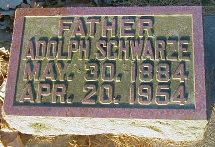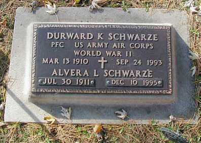 | to | Schwarze, Durward K. | 09-D097-03 | 13 Mar 1910 | 24 Sep 1993 | Alvera L.? | Adolph Schwarze & Anna Koeler | ||