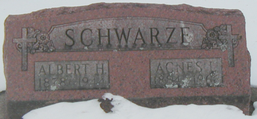 | t | Schwarze, Agnes L. | 9 Feb 1884 | 27 Sep 1966 | Albert Schwarze | 8 Apr 1913 | Oscar R. & Celia (Pettet) Norris | ||