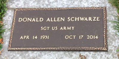 | to | Schwarze, Donald Allen | 06-D152-02 | 14 Apr 1931 | 17 Oct 2014 | Barbara Weber | 18 Sep 1965 | Ewald & Sarah (Olson) Schwarze | Vet- Sgt U.S. Army |