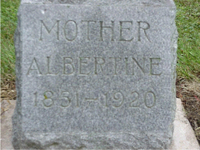 | cn | Bruchert, Albertine | 14 Mar 1851 | 28 Dec 1920 | August Bruchert | John & Charlotte (Ludke) Martens | |||