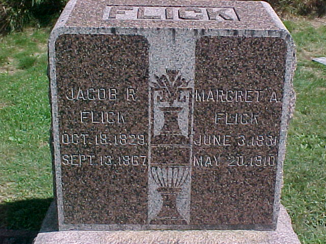 | to | Flick, Margaret Ann | 3 Jun 1861 | 20 May 1910 | Her husband also buried here | Jacob R. Flick | May 1851 | Jacob & Lydia Lavina (Flick) Miller |