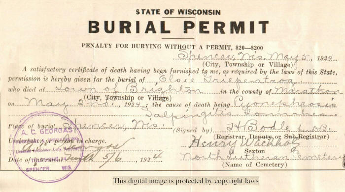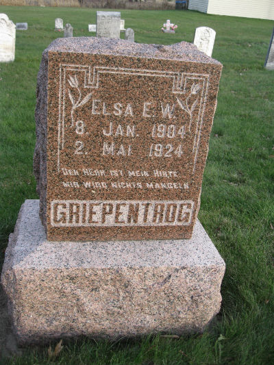 Griepentrog, Elsa Emilie; #2 | 8 Jan 1904 | 2 May 1924 | Stone says Elsa |