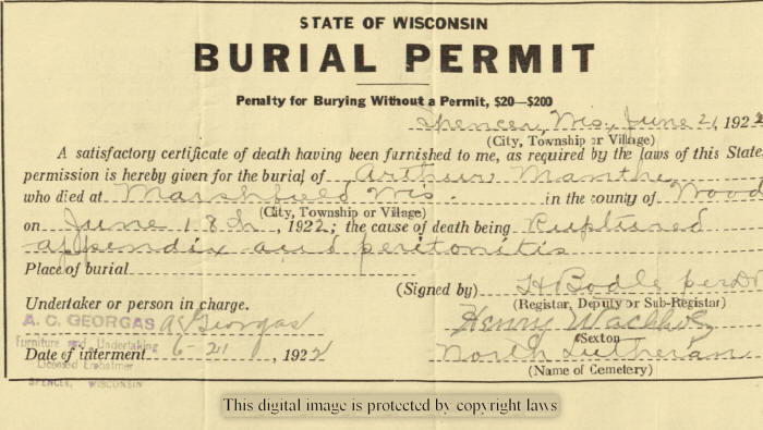 Manthe, Arthur; #2 | 30 Oct 1896 | 18 Jun 1922 | d. Ruptured appendix |