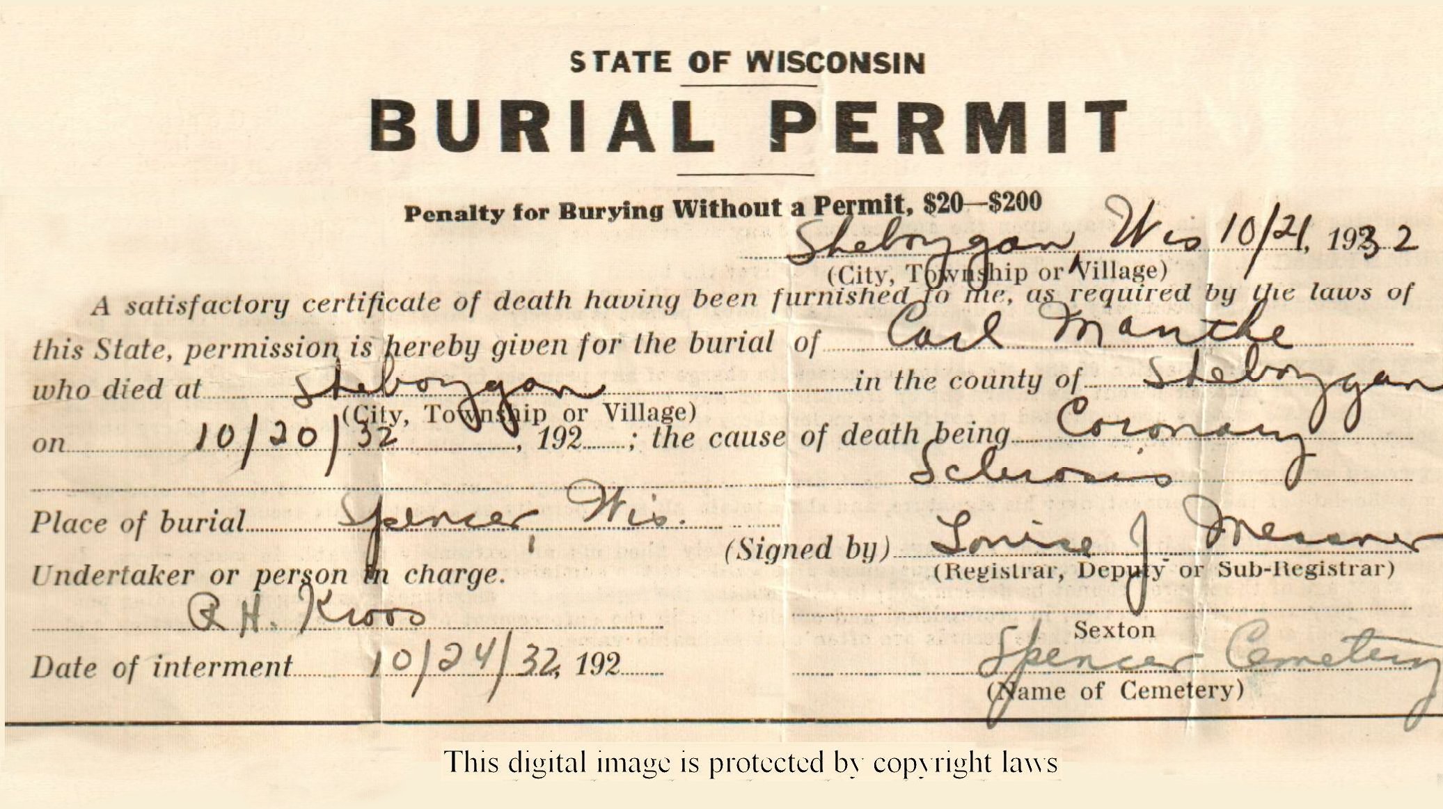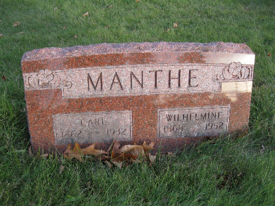 Manthe, Carl; #2 | 3 Jun 1862 | 21 Oct 1932 | Age 70 yr, 4 mo, 18 da |