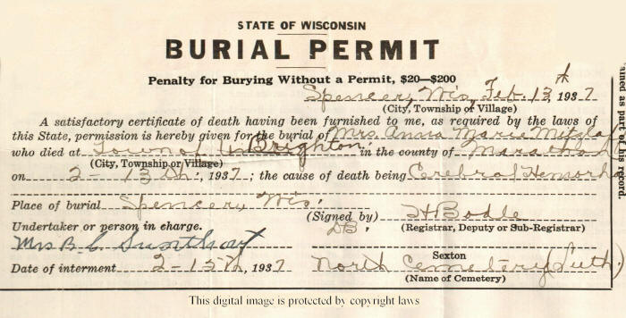 Mitzlaff, Anna Marie ; #2 Mitzlaff, Alice Frances | 31 Aug 1881 | 13 Feb 1937 | d. Stroke |