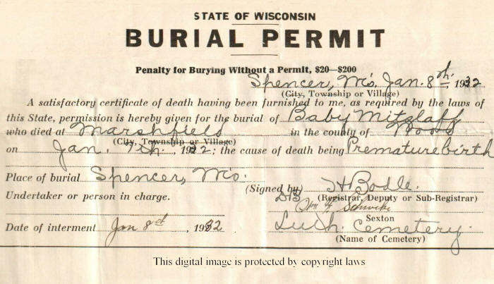 Mitzlaff, Baby | 7 Jan 1932? | 7 Jan 1932 | Burial Permit only |