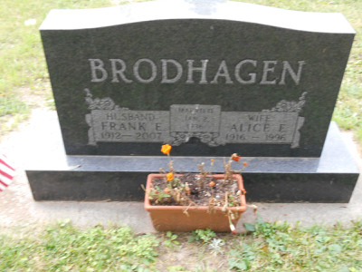 | cts | Brodhagen, Alice E. | O/11/2-3 | 10 Mar 1916 | 9 Nov 1996 | Frank E. Brodhagen | 2 Jan 1936 | James & Ann Christy | |