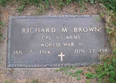 | toj | Brown, Richard M. | C/05/3 | 7 Jan 1914 | 22 Jun 1981 | WWII-Cpl US Army; b. Hull, Marthon Co. | Single | George & Liddie Brown | |