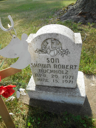 | ctoj | Buchholz, Shawn Robert | A/14/7 | 29 Apr 1971 | 15 Jun 1971 | d. Pneumonia | Steve & Susan (Busse) Buchholz | ||