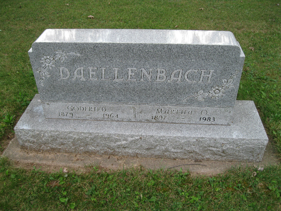 | tsjo | Daellenbach, Martha O. | M/4/4 | 10 May 1897 | 3 Aug 1983 | Godfried "Fred" Daellenbach | 9 Dec 1913 | Hermann & Bertha (Diemberg) Steinke | |