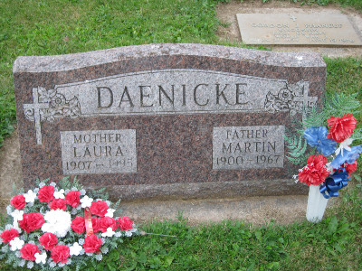 | ctsojx | Daenicke, Martin | Q/07/1-3 | 26 Sep 1900 | 5 Oct 1967 | b. Mayville, Clark Co. | Laura Heide | 1 Oct 1925 | Fred & Wilhelmina (Rempter) Daenicke |