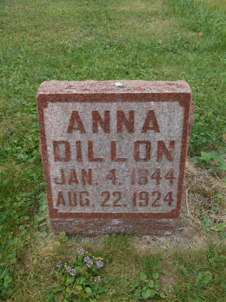 | ctoj | Dillon, Anna | F/10/4-6 | 4 Jan 1844 | 24 Aug 1924 | b. Dublin, Ireland; m. Beaver Dam, WI; Original Settlers of Abbotsford in 1872 | Thomas Dillon | 1866 | Gribbon |