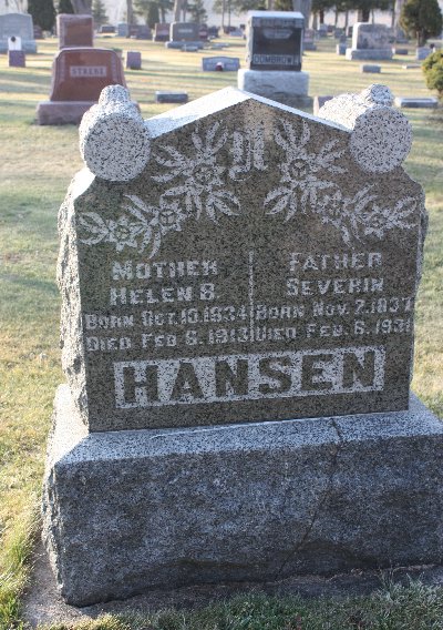 | ctnj | Hansen, Helen B. | F/8/4-6 | 10 Oct 1834 | 6 Feb 1913 | d. rcd 6-37 | Severin Hansen | Olsen | |