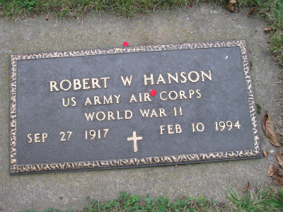 | tj | Hanson, Robert W. | N/1/4-6 | 27 Sep 1917 | 10 Feb 1994 | b. Athens, WI; WWII-U.S. Army Air Corps | |||