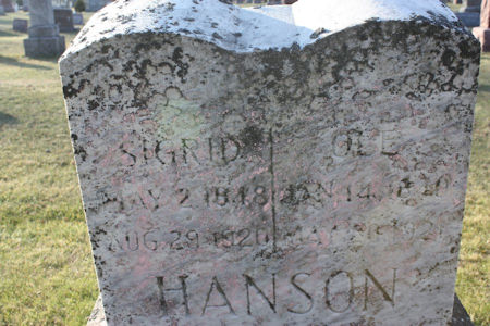 | ctnj | Hanson, Sigrid | H/4/6 | 2 May 1848 | 29 Aug 1920 | d. rcd 9-296 | Ole J. Hanson | Ole & Ingebor (Seman) Colrude | |