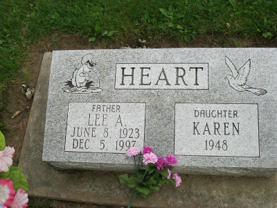 | tj | Heart, Karen | J/2/6 | 1946 | 1946 | Passed away shortly after birth; Dates provided by Joyce Heart | Lee & Joyce (Steitzer) Heart | ||