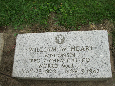 | toj | Heart, William W. | J/2/5 | 29 May 1920 | 9 Nov 1942 | WWII-WI PFC 2 Chemical Co.; KIA, Luzon, Phillippines | Single | ||