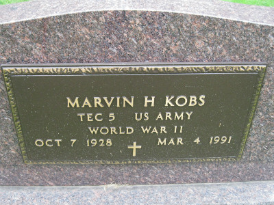 | ctjx | Kobs, Marvin H.; #2 | Q/12/1 | 7 Oct 1928 | 4 Mar 1991 | b. Illinois; WWII-Tec 5 US Army | Adeline M. Bochnia | 17 Nov 1950 | |