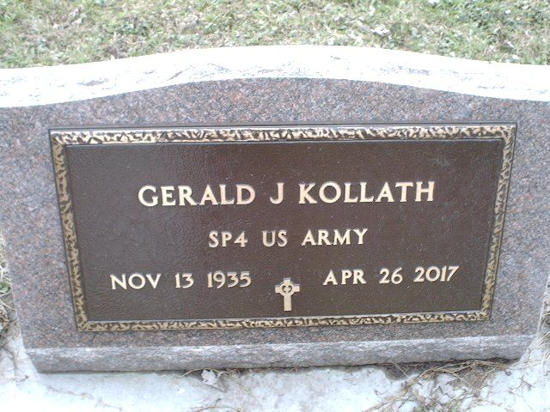 | coj | Kollath, Gerald John | S/3/4-5 | 13 Nov 1935 | 26 Apr 2017 | b. Marathon Co., Wis.; U.S. Army Sp 4 | Dona Jane (Mews) Schmidt | 6 Aug 1966 | John & Dorthea (Radtke) Kollath |
