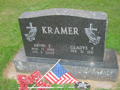 | tojj | Kramer, Arvin F. | R/8/1-2 | 17 Mar 1920 | 5 Apr 2009 | b. Holton, Marathon Co., WI; WWII - Sgt US Army | Gladys Kath | 16 Jun 1945 | Anton & Minnie (Klawiter) Kramer |