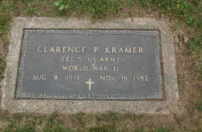 | cto | Kramer, Clarence P.; #2 | D/14/4-5 | 8 Aug 1912 | 18 Nov 1982 | WWII-Tec 5 US Army | Rosalind (Schreiber) | 18 Jul 1946 | Mathias & Edith Kramer |