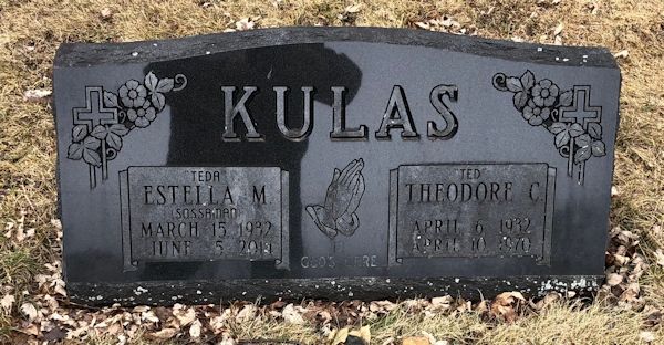 | ctoj | Kulas, Estella M. "Teda". | D/11/4-5 | 15 Mar 1932 | 5 Jun 2014 | b. Abbotsford, WI; In plot with 1st husband, Ted Kulas | Theodore Kulas Darrell Sossaman |