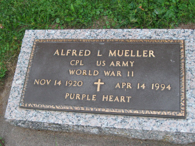 | tjx | Mueller, Alfred L. | R/4/3 | 14 Nov 1920 | 14 Apr 1994 | WWII-Purple Heart | Marie Fecker | 6 Jul 1946 | John & Sarah Mueller |