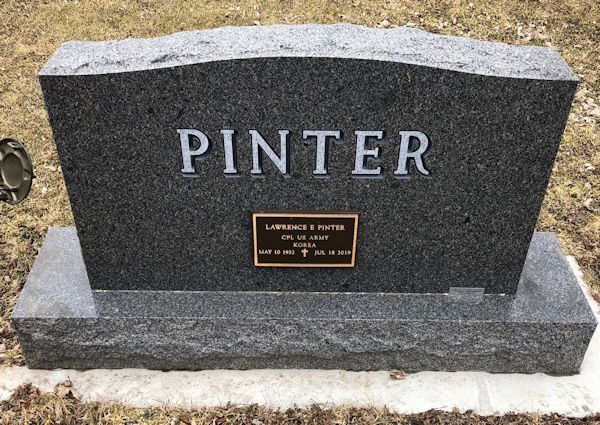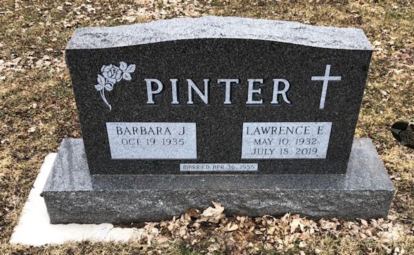 | toj | Pinter, Lawrence E.; #2 | C16/3 | 10 May 1932 | 18 Jul 2019 | b. Abbotsford, WI; Korean War era- US Army | Barbara Kohn | 16 Apr 1955 | John & Olivia (Decker) Pinter |