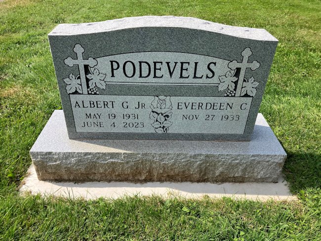 | j | Podevels, Albert G. "Junior" | T/18/6 | 11 May 1931 | 4 Jun 2023 | Police Chief Deputy Sheriff | Everdeen Viegut | 15 Nov 1962 | Albert & Ida A (Schorer) Podevels |