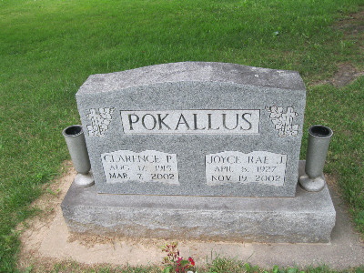 | ctojx | Pokallus, Joyce Rae | R/11/5-6 | 8 Apr 1927 | 19 Nov 2002 | b. Holton, Marathon Co., WI | Clarence Pokallus | 14 Jun 1950 | Grant & Viola (Roder) Pope |