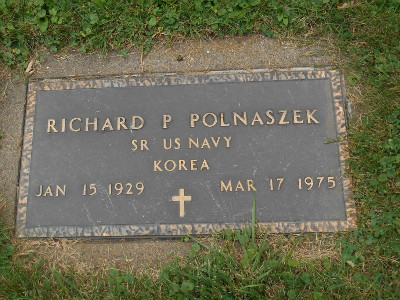| ctojx | Polnaszek, Richard P. Sr. ; #2 | L/11/4-5 | 15 Jan 1929 | 17 Mar 1975 | b. Thorp, WI; Korea-SR US Navy | Frances M. Pozdell | 26 Apr 1954 | Thomas & ? Polnaszek |