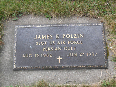 | toj | Polzin, James E. | N/17/1-3 | 13 Aug 1962 | 27 Jun 1997 | b. Marshfield, WI; Persian Gulf - SSgt US Air Force; Stone is a Memorial; Buried in Germany | Marion Wickert | 16 Aug 1986 | Bernard & Lois (Knight) Polzin |