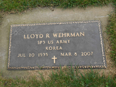 | toj | Wehrman, Lloyd Ralph | K/18/4-6 | 20 Jul 1935 | 8 Mar 2007 | Obit says buried here; Korea- SP3 US Army | Ann Mieczek - Div | 1957 | Herbert & Alvina (Mateofsky) Wehrman |