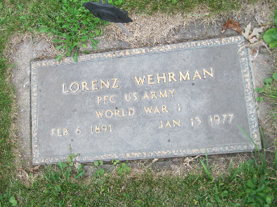 | tj | Wehrman, Lorenz; #2 | B/3/4-6 | 16 Feb 1891 | 13 Jan 1977 | WWI-PFC US Army | Theordore & Augusta Wehrmann | ||