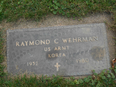 | ctsx | Wehrman, Raymond C. | K/18/4-6 | 6 Jan 1932 | 29 Sep 1980 | Korea-US Army | Herbert & Alvina (Mateofsky) Wehrman | ||