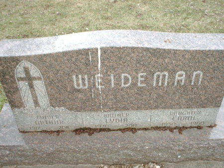 | ctoj | Weideman, Lydia "Lyd"; #2 | N/6/1-3 | 31 Aug 1920 | 02 Jan 2017 | b. Franfort, Marathon Co., WI | Arthur Weideman | 31 Aug 1940 | Harvey Sr. & Anna Barts |