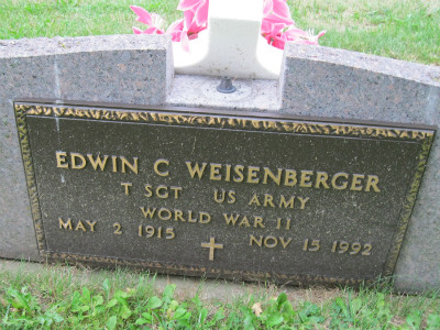 | ct | Weisenberger, Edwin C.; #2 | R/11/1 | 2 May 1915 | 15 Nov 1992 | WWII-T Sgt US Army | Arlene E. Splitt | 26 Jul 1941 | Joseph & Frances Weisenberger |