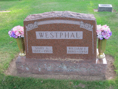 | ctxy | Westphal, William F. | A/8/7-8 | 1880 | 15 Jan 1951 | b. Germany | Mary A. Baronsky | Friedrick G. & Ernstine W. Westphal | |
