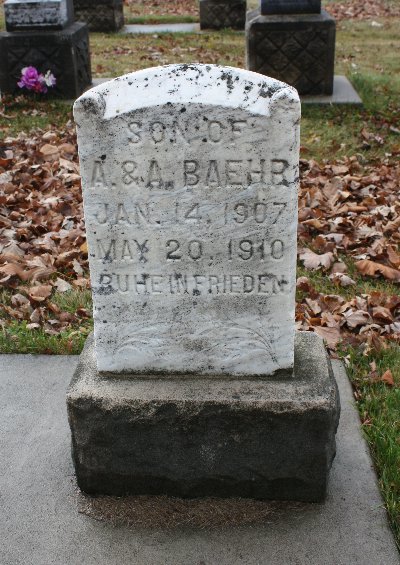 | cto | Baehr, Otto | NC-08-03 | 13-May-1863 | 25-Oct-1928 | Louisa Theel | 24-Aug-1895 | Carl & Fredericka (Wurdel) Baehr | |