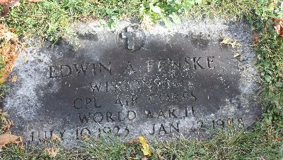 | cto | Fenske, Edwin A.; #1 | OC-25-06 | 10-Jul-1923 | 22-Jan-1948 | WWII - WI Cpl Air Corps | Myrtle Wilhelmi | 4-May-1946 | Albert & Minnie Fenske |