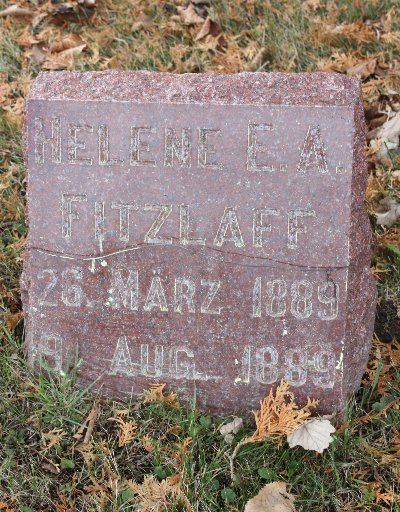 | ctxb | Fitzlaff, Helene E. A. | OB-27-20 | 26-Mar-1889 | 9-Aug-1889 | Frank & Wilhelmine "Minnie"(Benzmann) Fitzlaff? | |||