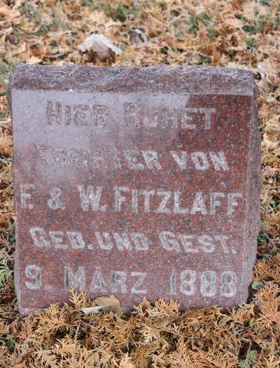 | ctx | Fitzlaff, Daughter | OB-26-29 | 9-Mar-1888 | 9-Mar-1888 | Frank & Wilhelmine "Minnie"(Benzmann) Fitzlaff | |||