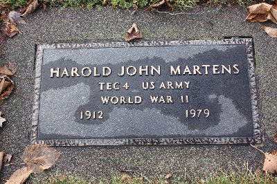 | txb | Martens, Harold John; #1 | OC-14-34 | 1912 | 1979 | WWII-Tec 4 US Army | Fred & Mabel (Barker) Martens | ||