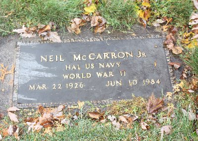 | ctx | McCarron, Neil "Pat" Jr.; #1 | NB-08-07 | 22-Mar-1926 | 10-Jun-1984 | WWII-HA1 US Navy | Janis Zier | 1-Aug-1964 | Pat & Gladys (Martens) McCarron |