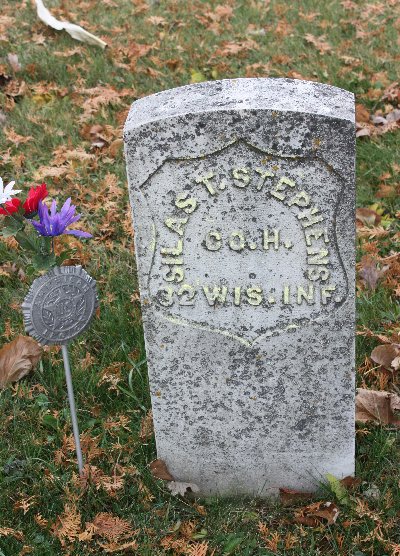 | ctvxb | Stephens, Silas | OB-26-15 | 8-Mar-1831 | 2-May-1911 | b. NY; Civil War-Co. H. 32nd Wi Inf; Vet rcd says D. 12-Oct-1917 | Melissa Timmerman | 31-Jul-1853 | Perry & Betsy Stephens |